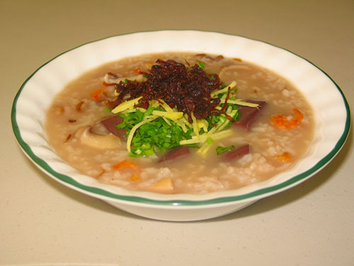 - Múc cháo ra tô, cho thêm ít giá sống, hành ngò, gừng cắt sợi, hành tím phi và ít tiêu xay vào là có thể mời cả nhà thưởng thức.