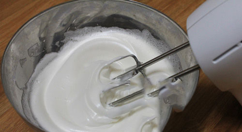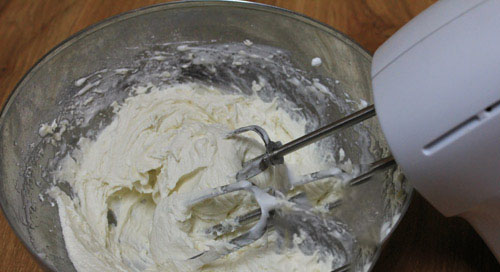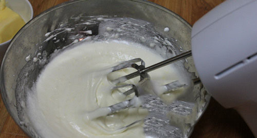 - Bơ để ở nhiệt độ phòng cho mềm, hoặc cho vào lò vi sóng khoảng 10 giây (không quay chảy) đến khi ấn tay thấy bơ mềm là được, dùng máy đánh trứng đánh sơ rồi trút bơ vào đánh khoảng 30 giây cùng phần lòng trắng đã đánh bông lúc trước.