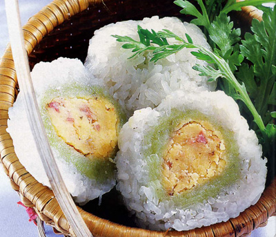 Màu xanh lá cây lấy từ thực vật chủ yếu là các loại lá như lá dứa, lá tre, mây, lá khúc, lá ngót... dùng để nhuộm màu các loại bánh.