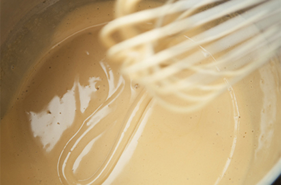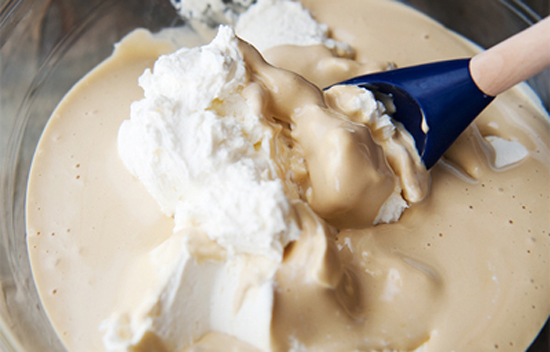 Bước 5: Cho từ từ hỗn hợp kem vào với hỗn hợp trứng ở bước 2, trộn cho đến khi thật đều.