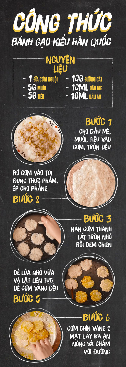 Chỉ vài phút "biến hóa" là có ngay món bánh gạo chiên thơm giòn từ cơm nguội còn thừa trong tủ rồi!