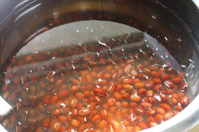 - Đậu đỏ đãi sạch, nhặt bỏ những hạt hỏng, ngâm đậu trong âu nước ấm khoảng 5-6 tiếng.