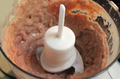 - Đậu sau khi mềm bạn cho vào máy sinh tố, thêm vào một ít nước hầm đậu để dễ xay và không bị cháy máy, xay đến khi hạt đậu tơi ra.