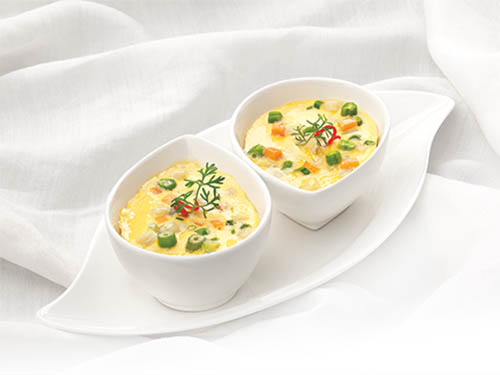 Cho hỗn hợp trứng vào chén, dùng màng lọc thực phẩm bọc lại rồi đem hấp chín.