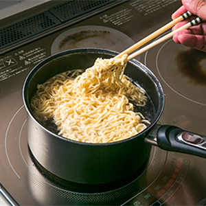 Đun sôi nước trong nồi, bỏ "Udon Suki Suki" vào, luộc udon trong vòng 4 phút. Sau khi luộc xong thì đổ vào rổ cho ráo nước.