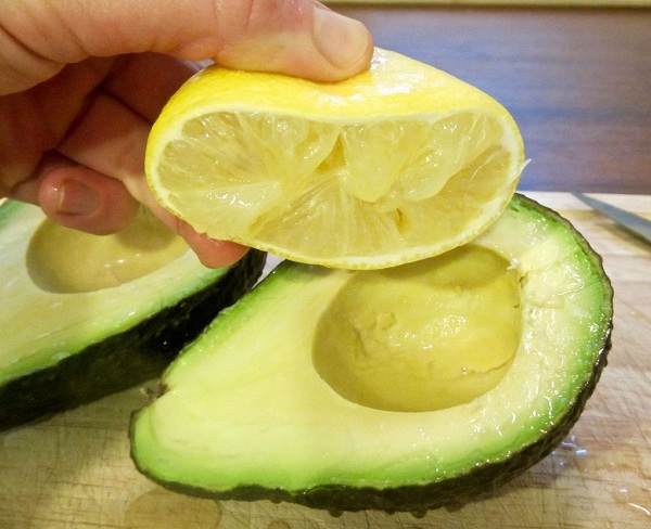 Cách thực hiện như sau: Bạn cắt đôi 1 trái chanh. Bóp nước chanh vào phần thịt của nửa qua bơ, đảm bảo rằng lớp thịt bơ đều được tiếp xúc với nước chanh.