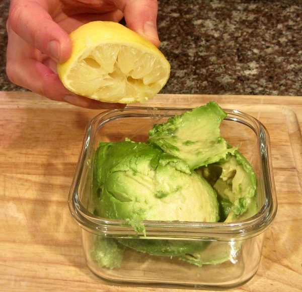 Sau đó, bạn dùng nửa quả chanh vắt nước vào thịt bơ.