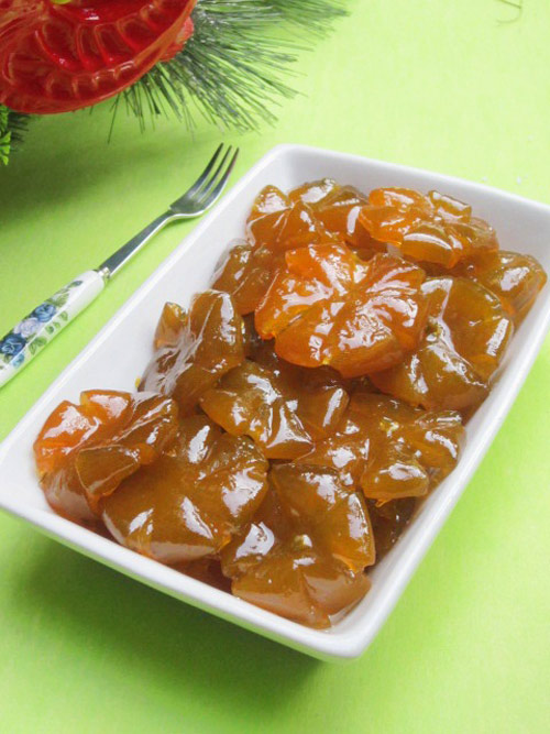 Bước 9: Khi mứt quất đã khô hẳn thì cho mứt vào lọ thủy tinh để bảo quản và dùng dần.