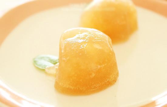 Nguyên liệu: 1/4 quả táo, 1/4 thìa cà phê gelatine (bột làm đông) hoặc ½ thìa cà phê bột thạch, 1 thìa súp nước lạnh.