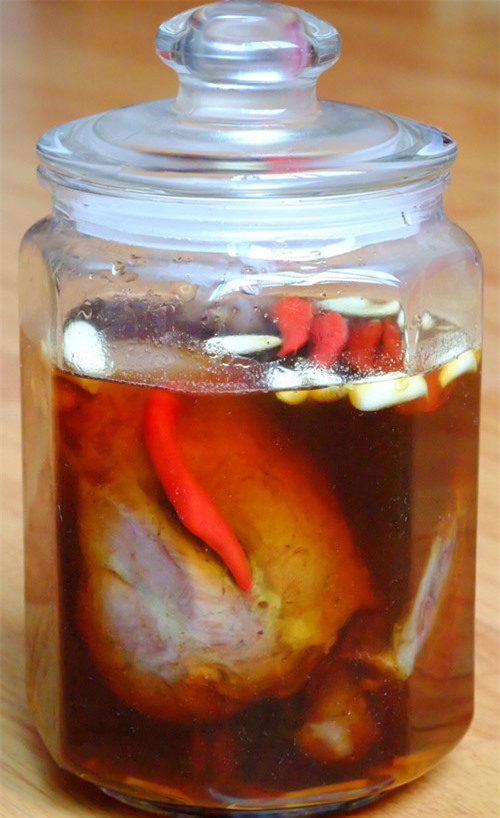 4. Đợi đến khi bắp bò và mắm phải thật nguội bạn mới tiến hành cho vào lọ để ngâm. Lọ phải tráng sạch bằng nước sôi để ráo. Sau đó cho bò vào lọ, đổ hỗn hợp mắm pha cho ngập mặt chỗ bắp bò, thả nốt phần tỏi và ớt tươi bạn chuẩn bị vào lọ. Nếu bò nổi lên trên bạn dùng que tre để ấn giữ hoặc dùng đĩa sứ, miếng nam tre chèn lên trên, bò ngập trong mắm mới không bị hỏng.