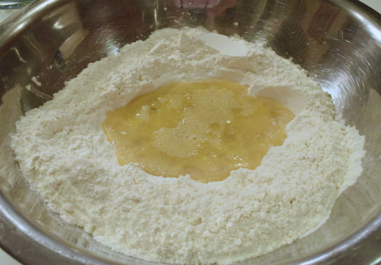 Bước 2: Cho bột mì vào 1 tô lớn, trộn đều với đường và muối.