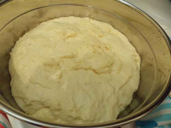 Bước 4: Dùng 1 khăn ẩm đậy thau bột lại và ủ khoảng 1 tiếng cho bột nở phồng.
