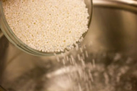 Trong lúc luộc khoai, bạn có thể tranh thủ chuẩn bị chỗ bột báng.