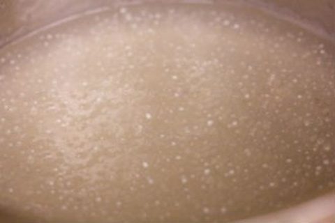 Đun sôi khoảng 500ml nước trong nồi nhỏ, đổ bột báng vào luộc trong 6-7 phút.