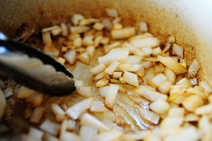 Sử dụng chảo vừa xào thịt bạn cho thêm một ít dầu ăn vào đun nóng, cho tỏi vào phi thơm rồi cho hành tây vào xào.