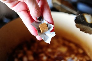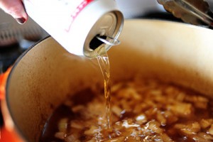 Tiếp tục, bạn cho 1 lít nước lọc vào đun sôi (nếu có nước dùng thịt bò càng tốt), cho viên súp bò vào hòa tan rồi tiếp tục đổ bia vào (bia sẽ giúp thịt bò mềm và không có mùi hôi)