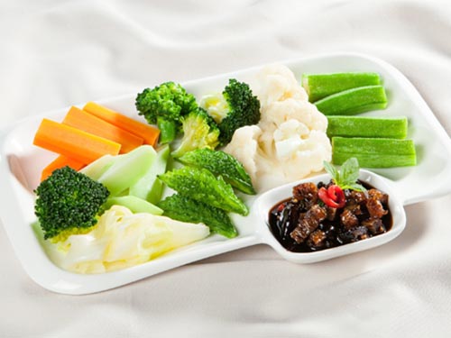 Luộc các loại rau củ trong nước có ít muối. Ăn kèm với kho quẹt.