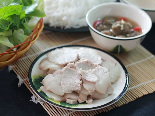 - Trong lúc luộc thịt bạn tranh thủ chần bún với nước sôi.