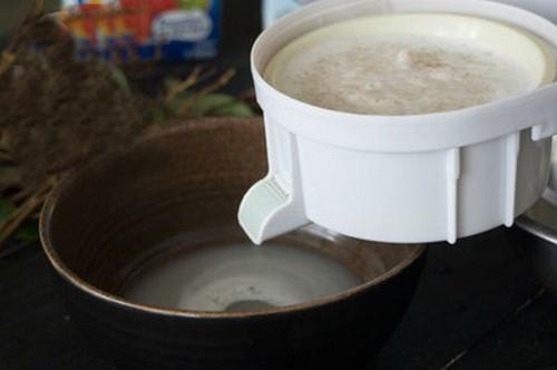 Cho vào máy xay nhuyễn và lọc lấy nước vải.